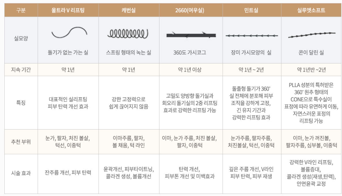 실로하는 리프팅에서 사용되는 실은 여러종류가 있다.